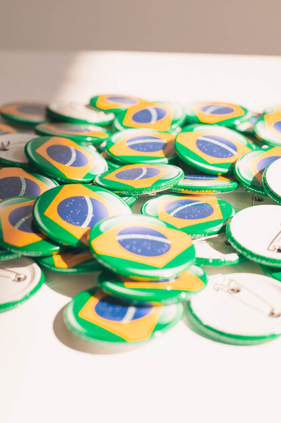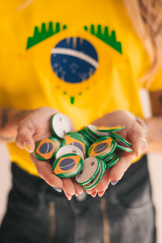 BÓTONS ESTAMPA BANDEIRA DO BRASIL COM 3,5 CM DE DIÂMETRO