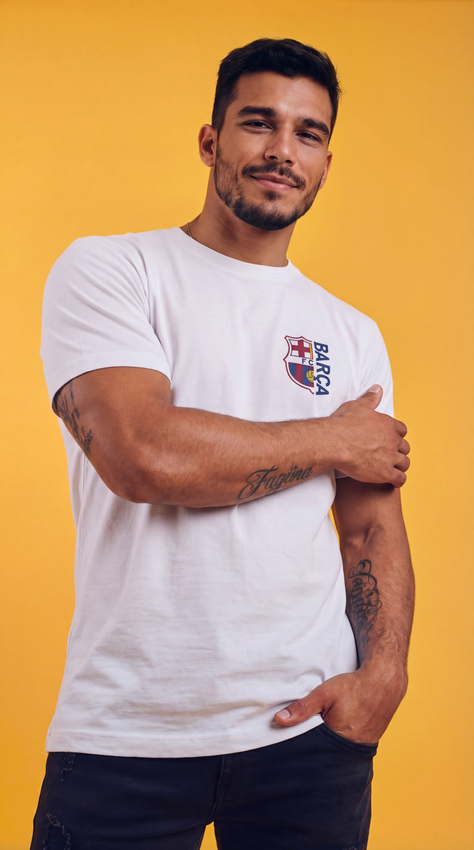 Camiseta Masculina com modelagem tradicional de gola'' O''