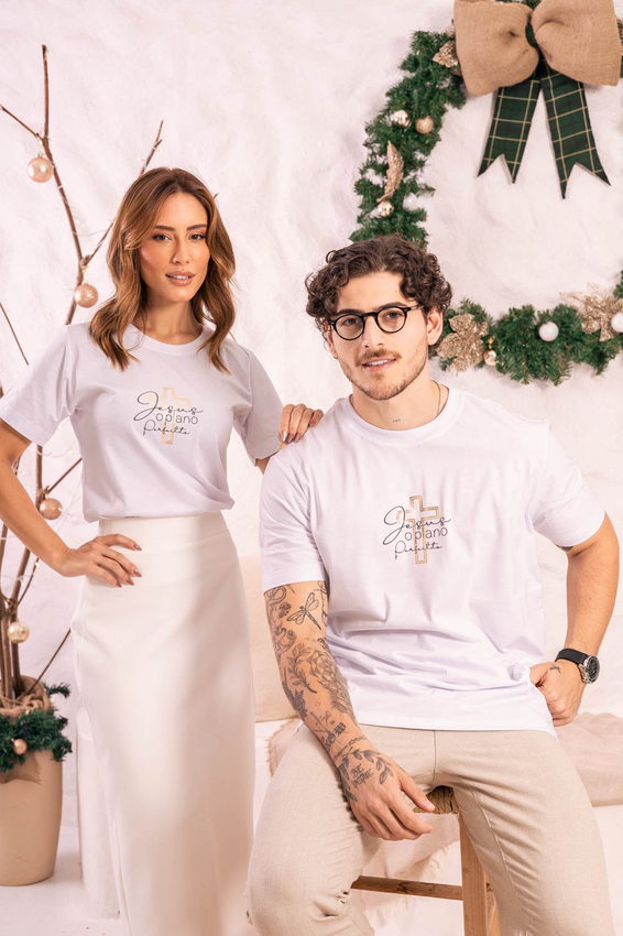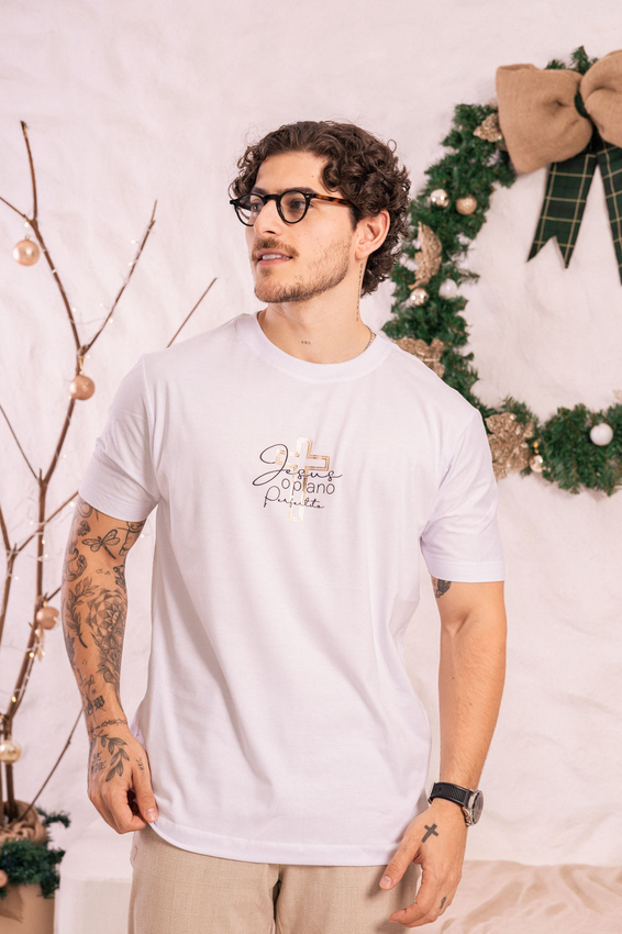 Camiseta Masculina com modelagem tradicional de gola'' O''
