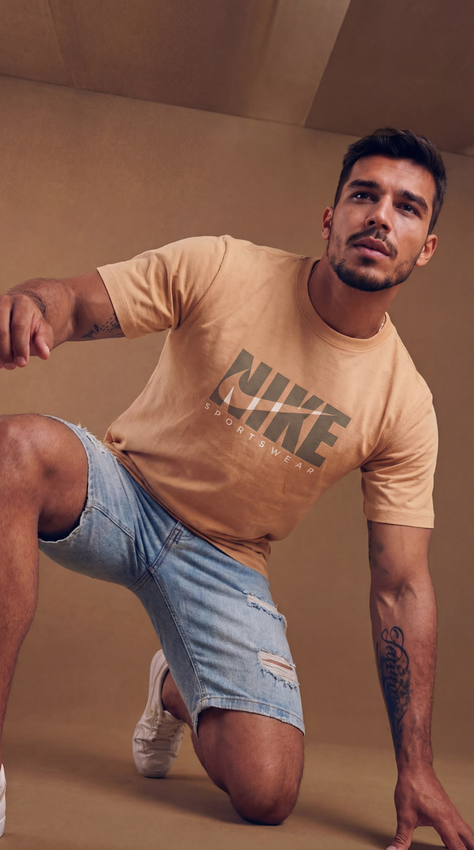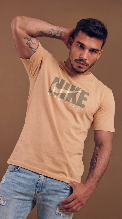 Camiseta Masculina com modelagem tradicional de gola'' O''
