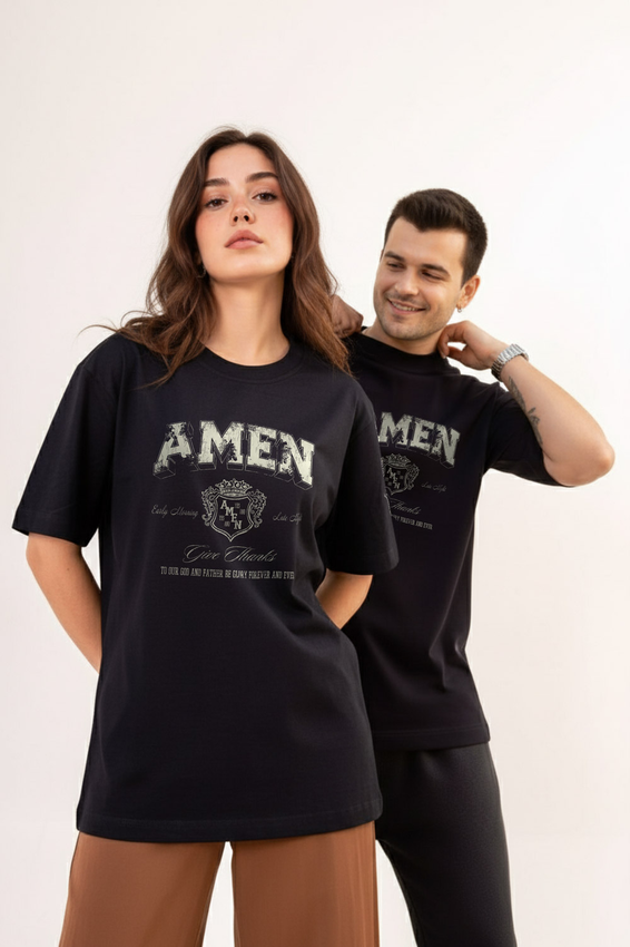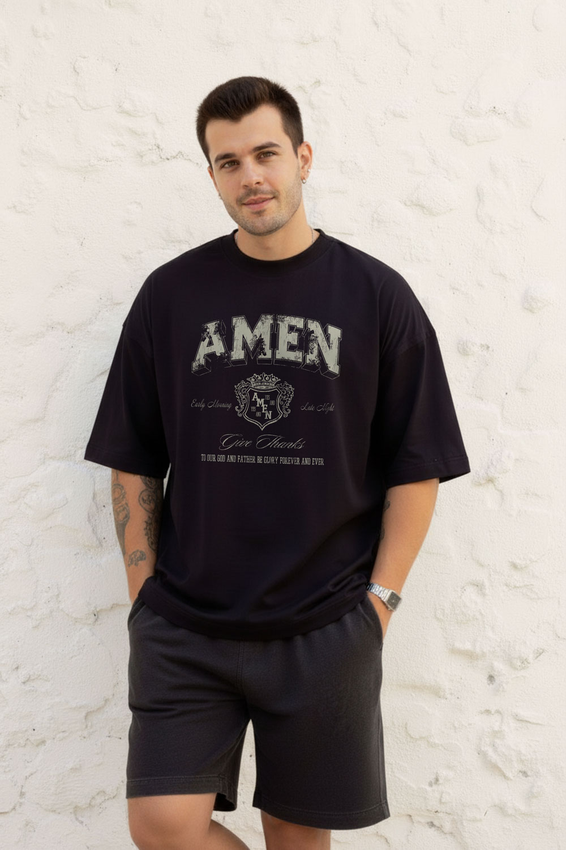 Camiseta Over com modelagem tradicional de camiseta Gola Alta em Ribana Canelada e costura ombro a ombro.