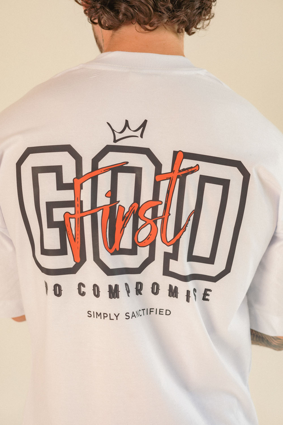 Camiseta Over com modelagem tradicional de camiseta Gola Alta em Ribana Canelada e costura ombro a ombro.