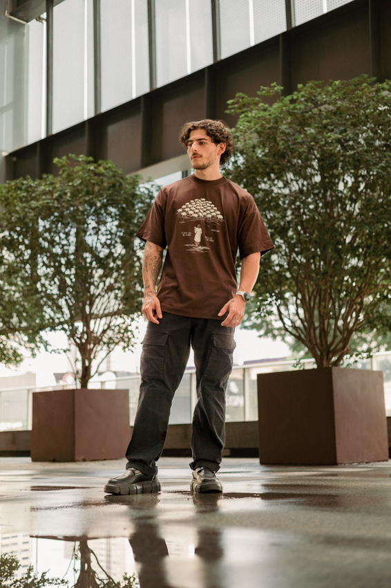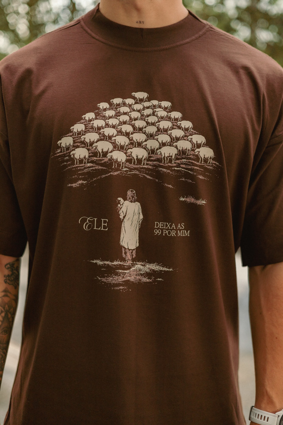 Camiseta Over com modelagem tradicional de camiseta Gola Alta em Ribana Canelada e costura ombro a ombro.