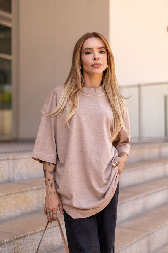 Tshirt Estonada com modelagem tradicional de camiseta gola''O'' com ribana e costura ombro a ombro.