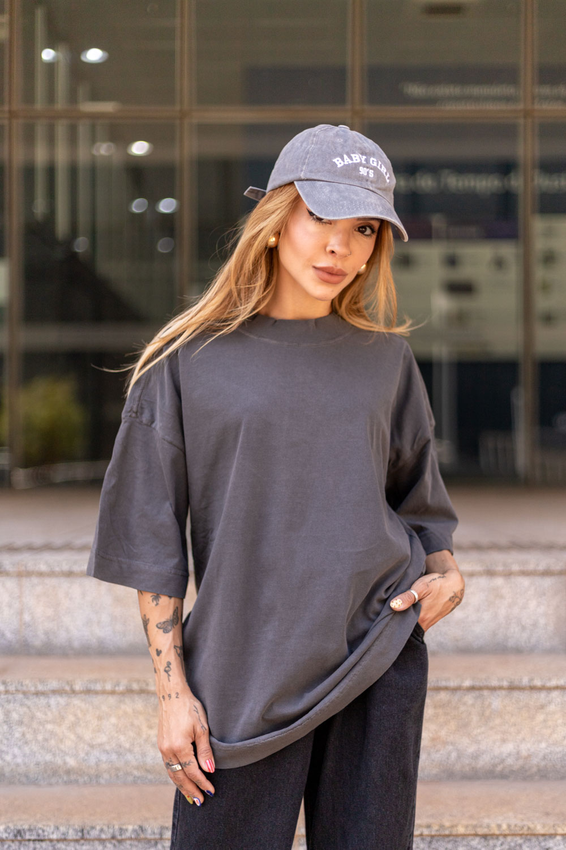 Tshirt Estonada com modelagem tradicional de camiseta gola''O'' com ribana e costura ombro a ombro.
