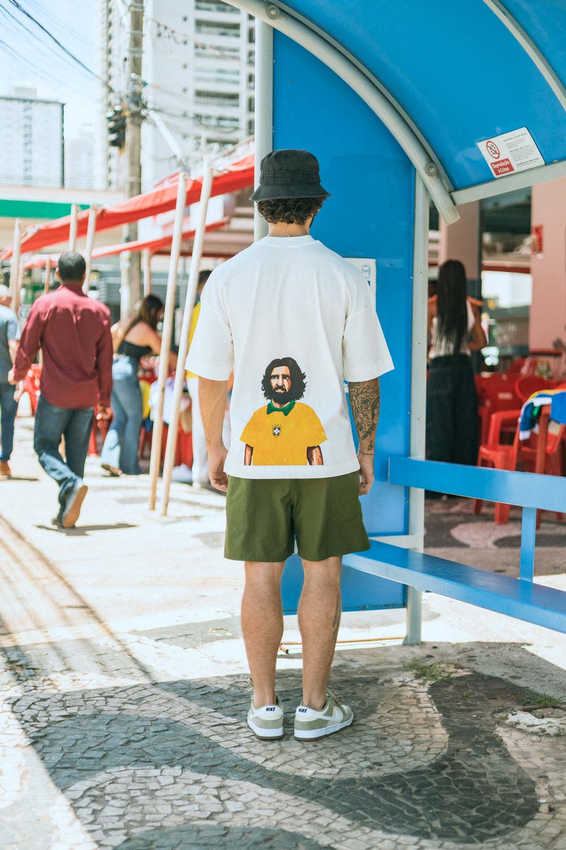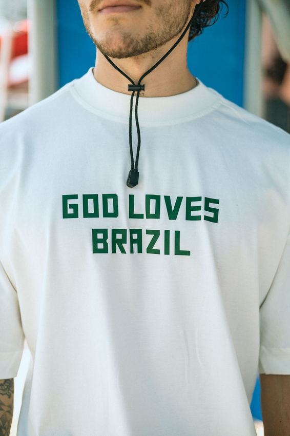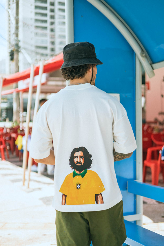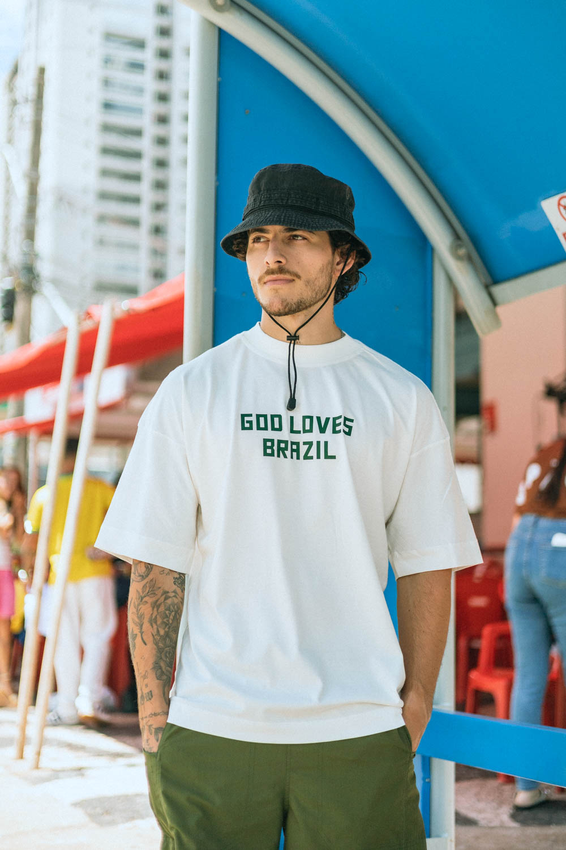 Camiseta Over com modelagem tradicional de camiseta Gola Alta em Ribana Canelada e costura ombro a ombro.