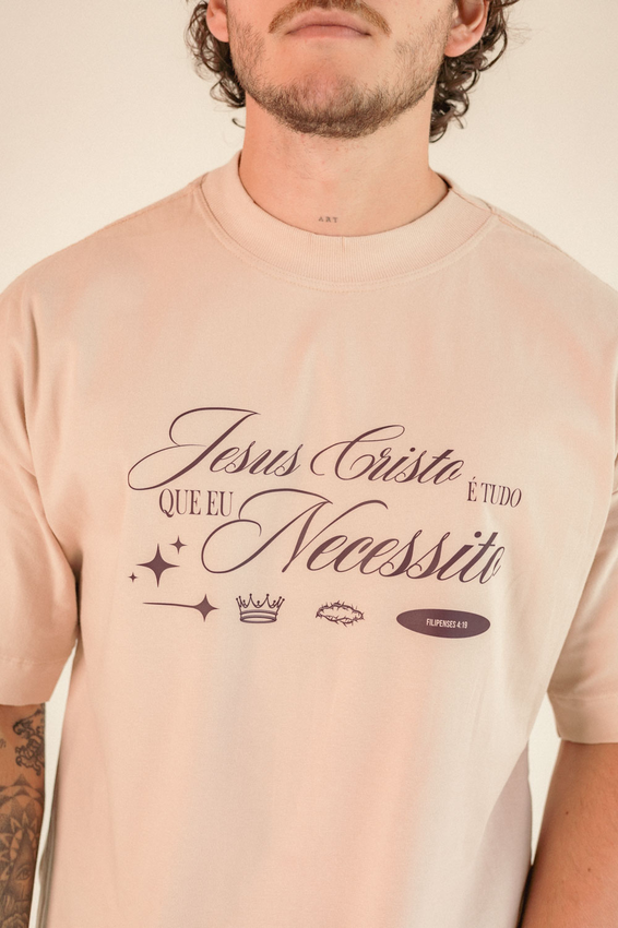 Camiseta Over com modelagem tradicional de camiseta Gola Alta em Ribana Canelada e costura ombro a ombro.