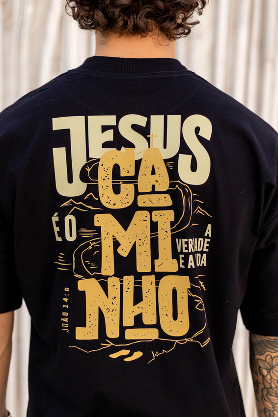 Camiseta Over com modelagem tradicional de camiseta Gola Alta em Ribana Canelada e costura ombro a ombro.
