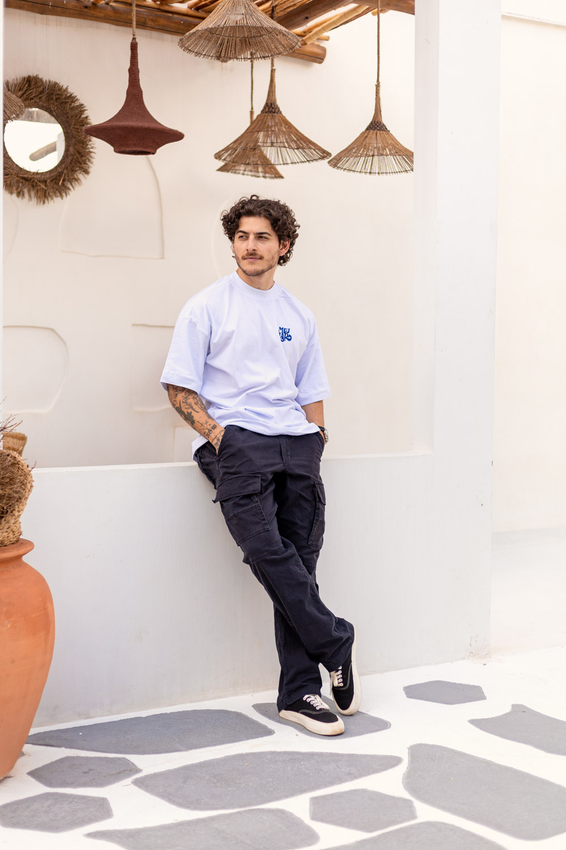 Camiseta Over com modelagem tradicional de camiseta Gola Alta em Ribana Canelada e costura ombro a ombro.