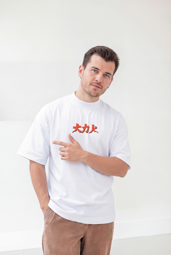 Camiseta Over com modelagem tradicional de camiseta Gola Alta em Ribana Canelada e costura ombro a ombro.