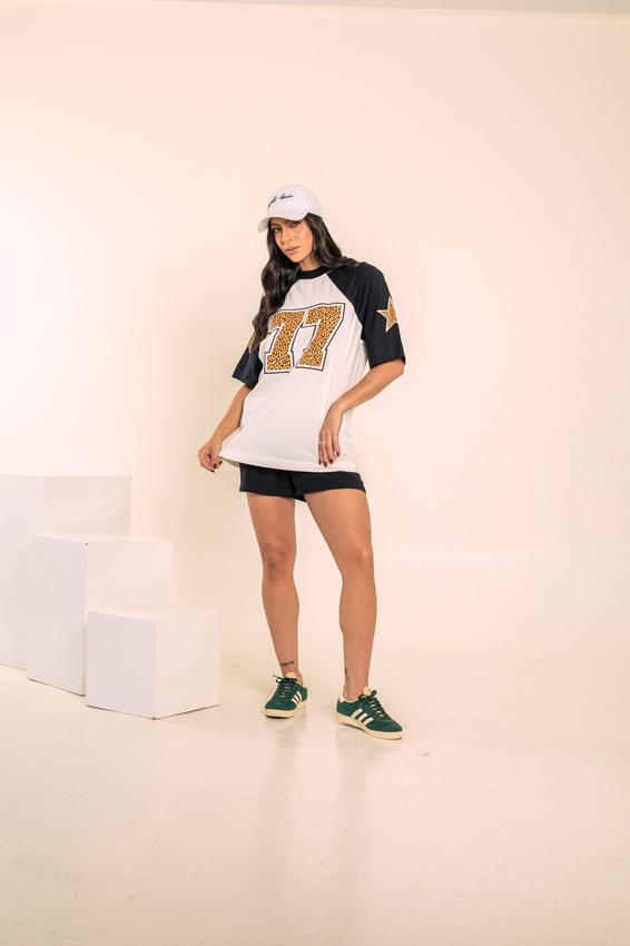 Camiseta Over com modelagem Raglan, com Gola em Ribana Canelada