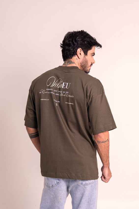 Camiseta Over com modelagem tradicional de camiseta Gola Alta em Ribana Canelada e costura ombro a ombro.