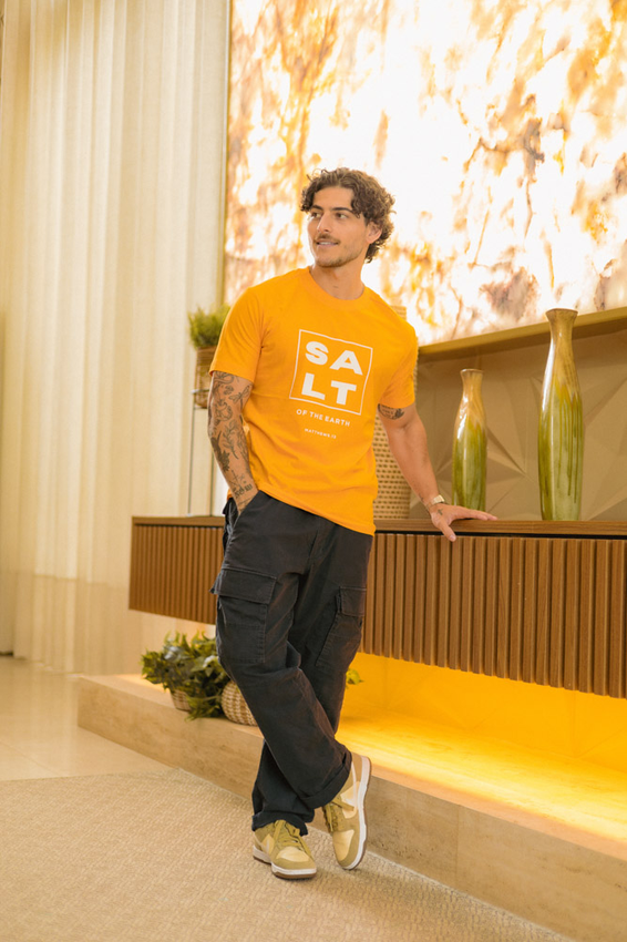Camiseta Masculina com modelagem tradicional de gola'' O''