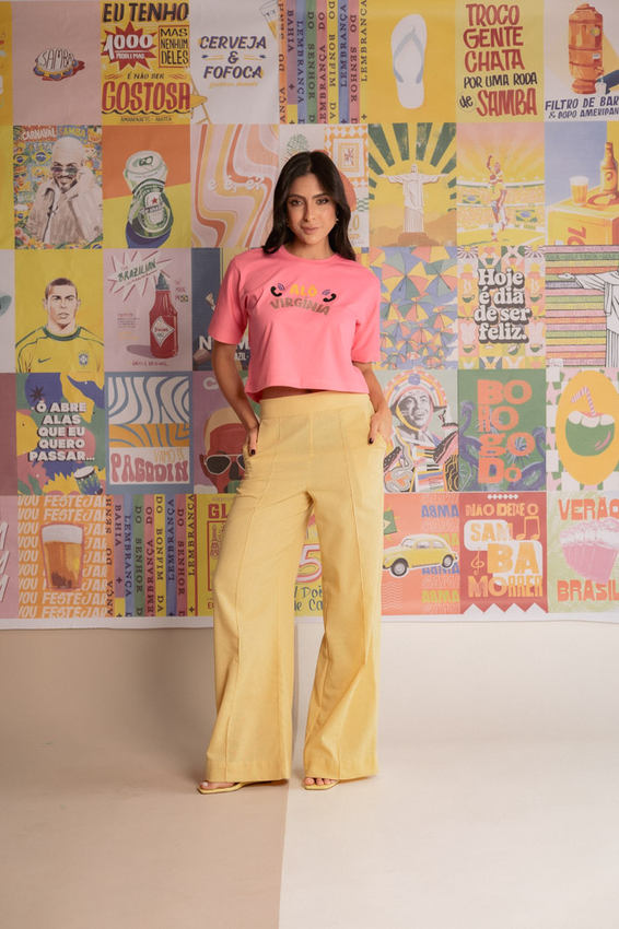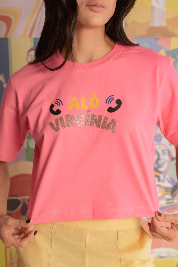 Cropped com modelagem tradicional de camiseta gola'' O''