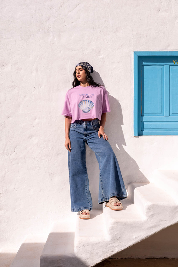 Cropped com modelagem tradicional de camiseta gola'' O''