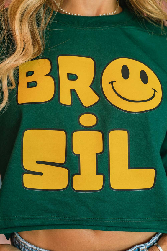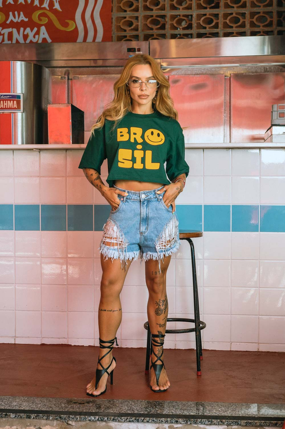 Cropped com modelagem tradicional de camiseta gola'' O''