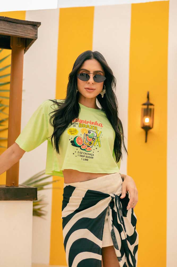 Cropped com modelagem tradicional de camiseta gola'' O''