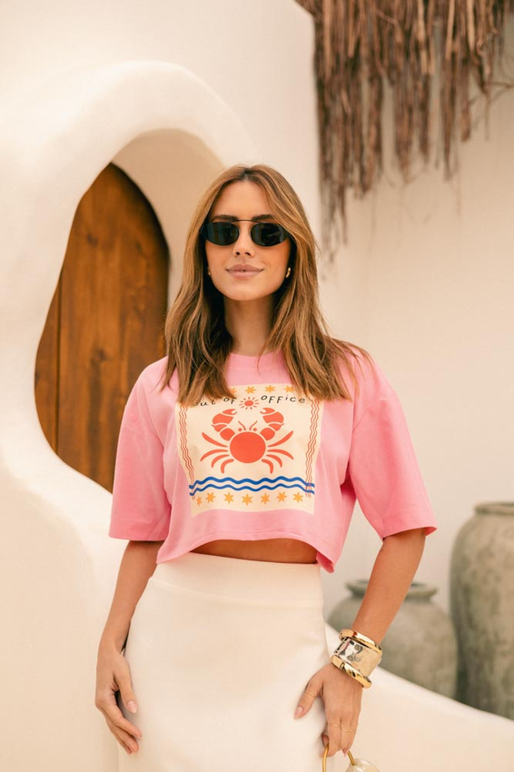 Cropped com modelagem tradicional de camiseta gola'' O''