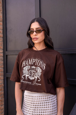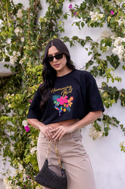 Cropped com modelagem tradicional de camiseta gola'' O''