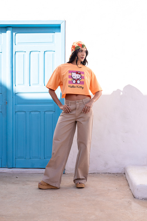 Cropped com modelagem tradicional de camiseta gola'' O''