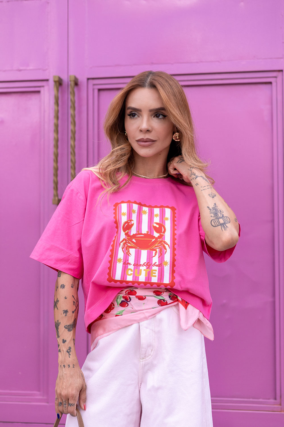 Cropped com modelagem tradicional de camiseta gola'' O''