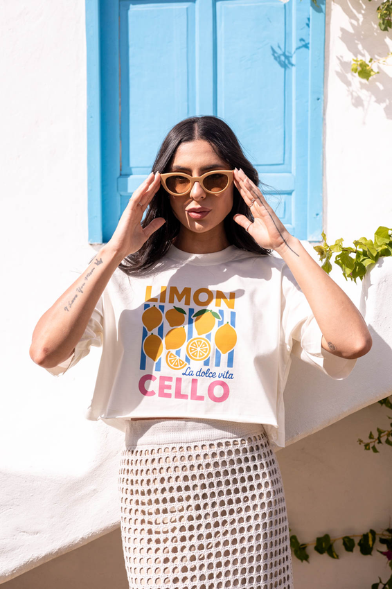 Cropped com modelagem tradicional de camiseta gola'' O''