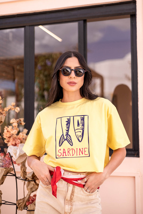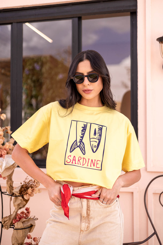 Cropped com modelagem tradicional de camiseta gola'' O''