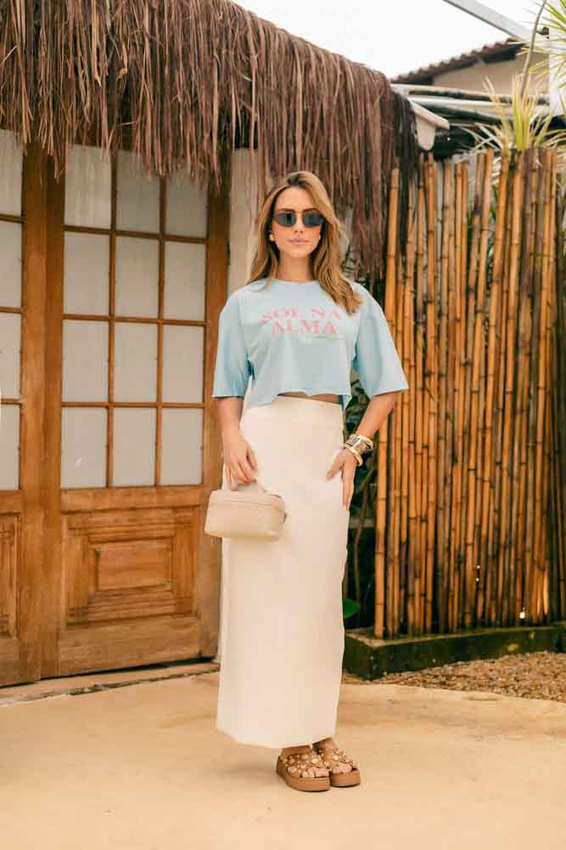 Cropped com modelagem tradicional de camiseta gola'' O''