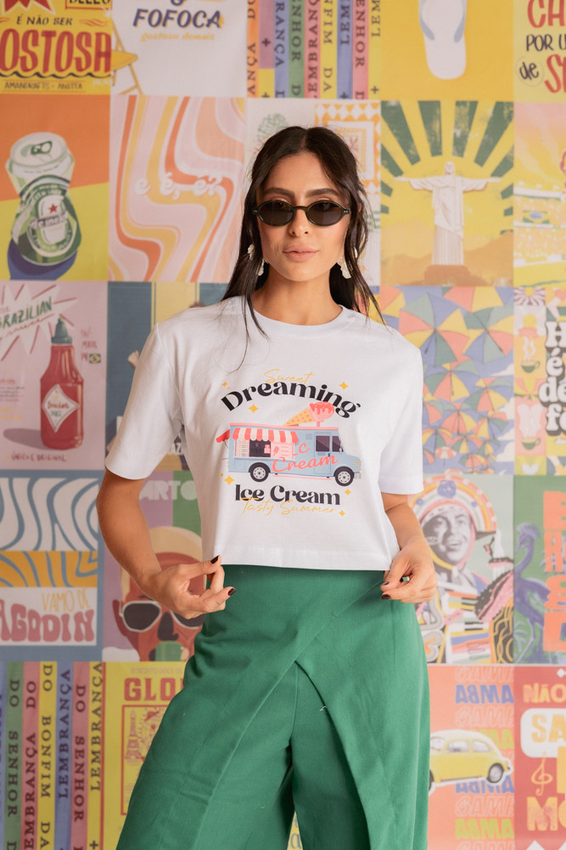 Cropped com modelagem tradicional de camiseta gola'' O''