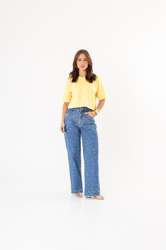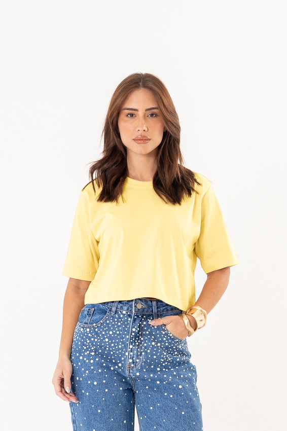 Cropped com modelagem tradicional de camiseta gola'' O''