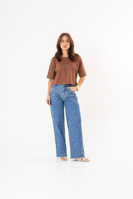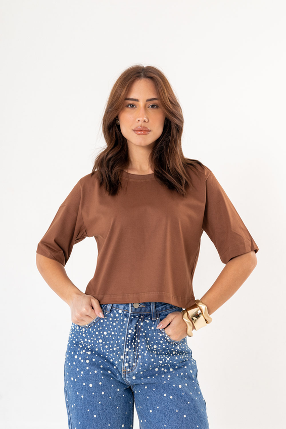 Cropped com modelagem tradicional de camiseta gola'' O''