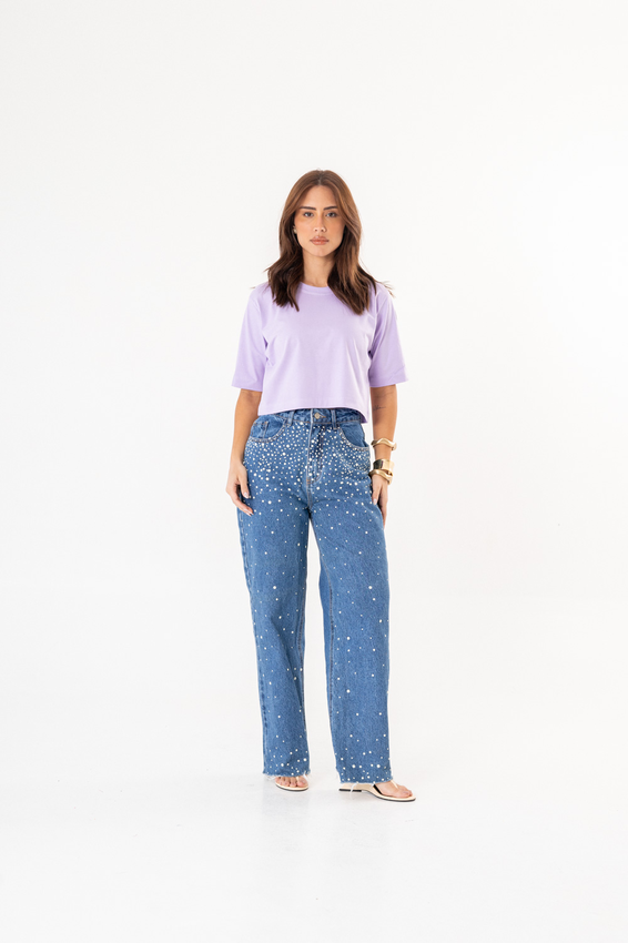 Cropped com modelagem tradicional de camiseta gola'' O''