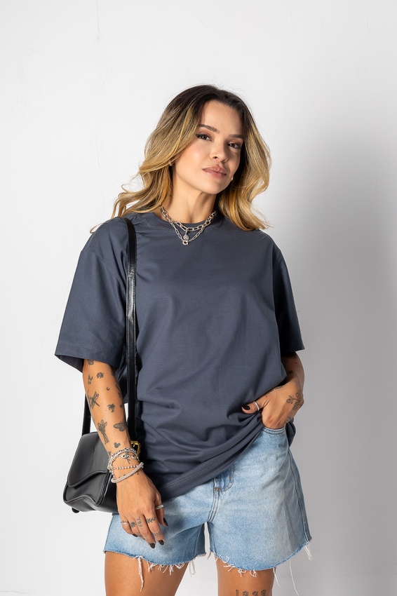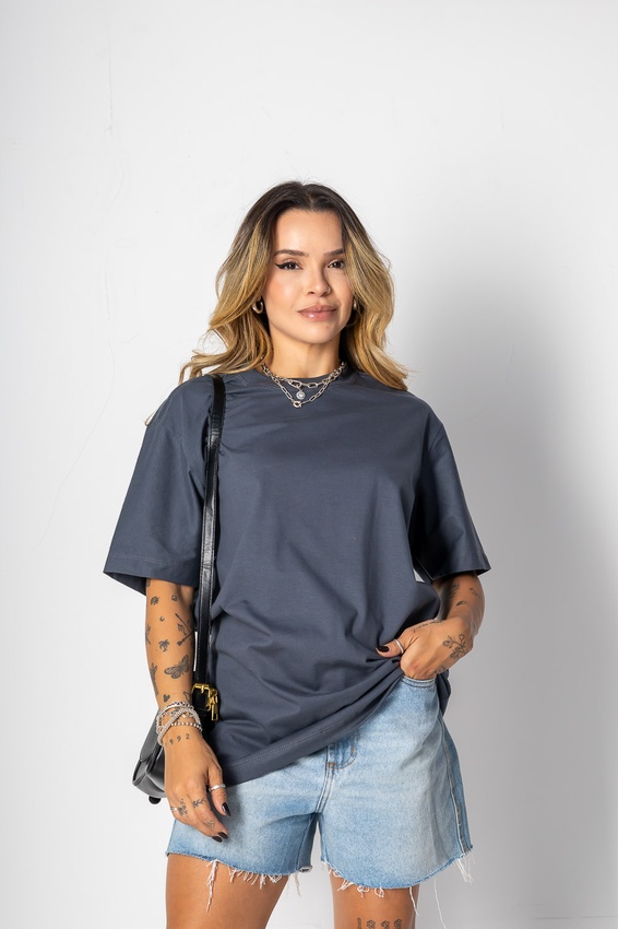 Tshirt Max com modelagem tradicional de camiseta gola''O'' com ribana e costura ombro a ombro.