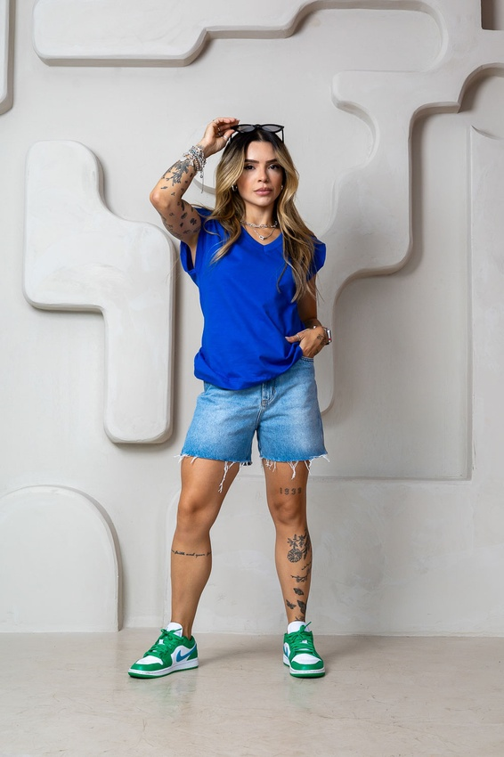 Tshirt Gola V Muscle com modelagem tradicional de camiseta gola''V'' e costura ombro a ombro.