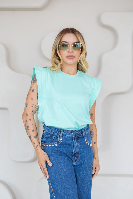 Tshirt Muscle com modelagem tradicional de camiseta gola''O'' com ribana e costura ombro a ombro.