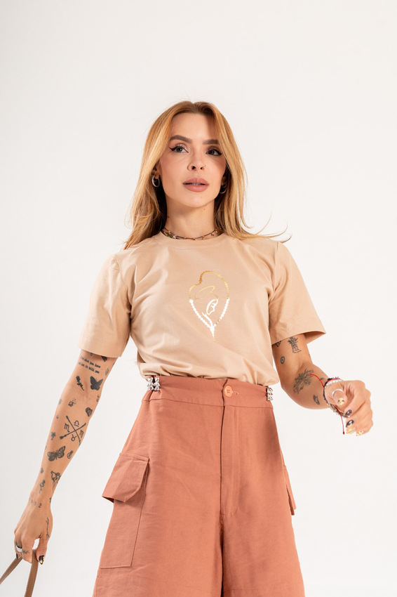 Tshirt com modelagem tradicional de camiseta gola''O'' com Gola em Ribana Canelada e costura ombro a ombro.