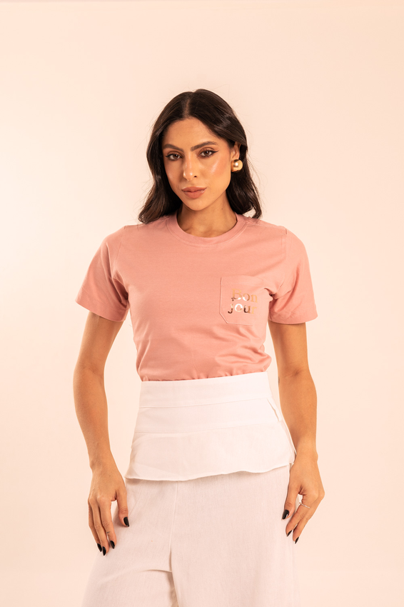 Tshirt com modelagem tradicional de camiseta gola''O'' com bolso lateral, Gola em Ribana Canelada e costura ombro a ombro.