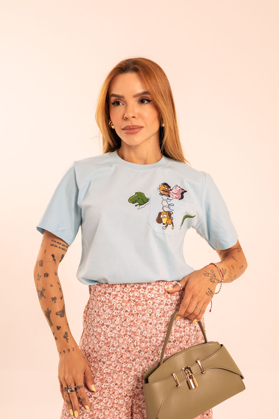 Tshirt com modelagem tradicional de camiseta gola''O'' com bolso lateral, Gola em Ribana Canelada e costura ombro a ombro.