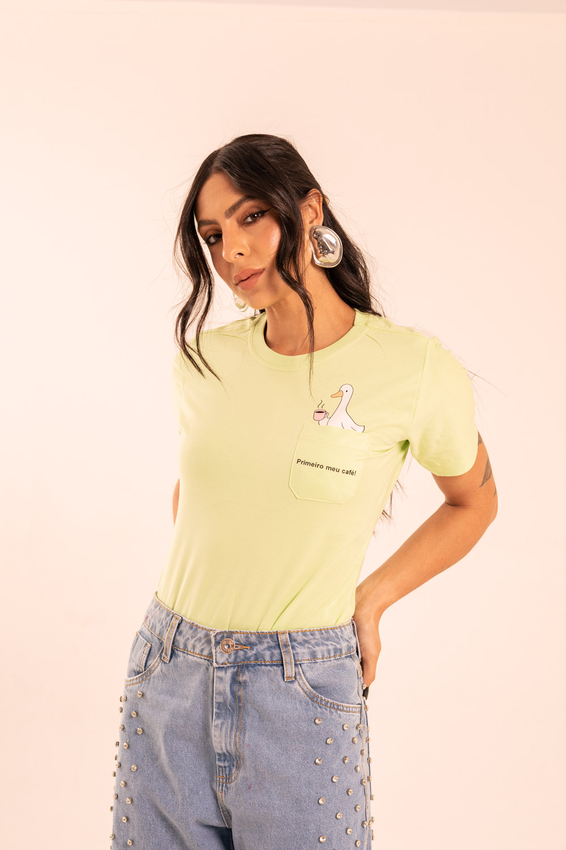 Tshirt com modelagem tradicional de camiseta gola''O'' com bolso lateral, Gola em Ribana Canelada e costura ombro a ombro.