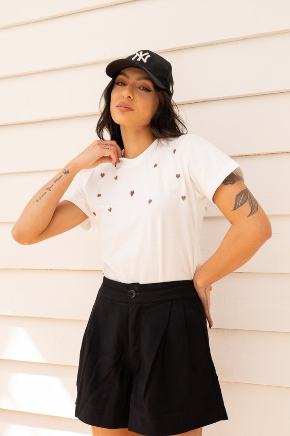 Tshirt com modelagem tradicional de camiseta gola''O'' em Riabana Canelada e costura ombro a ombro.