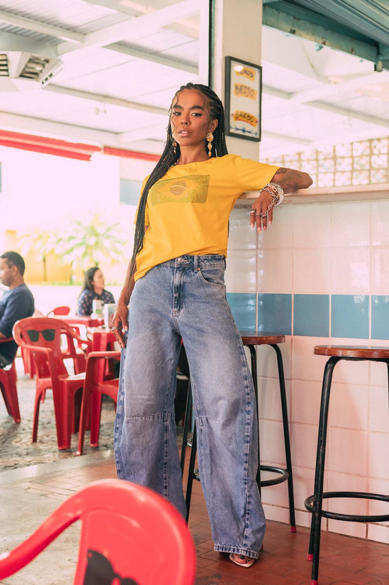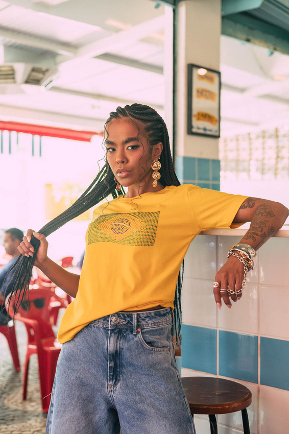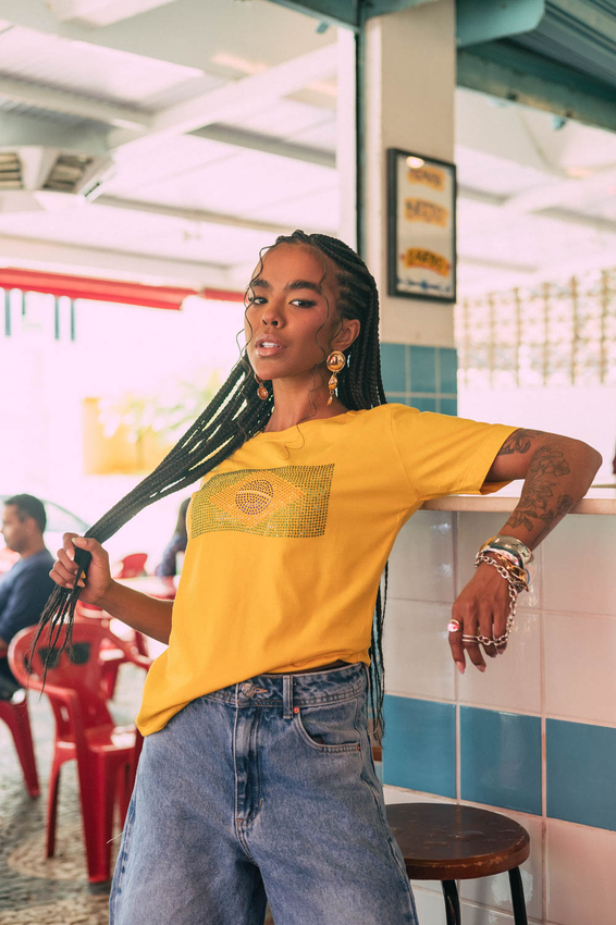 Tshirt Bandeira de Strass Aplicação