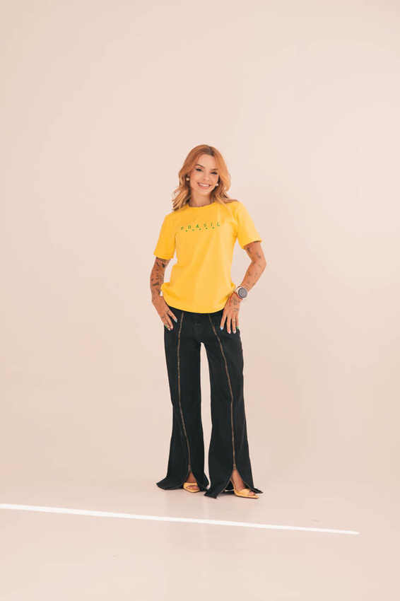 Tshirt com modelagem tradicional de camiseta gola''O'' com Gola em Ribana Canelada e costura ombro a ombro.