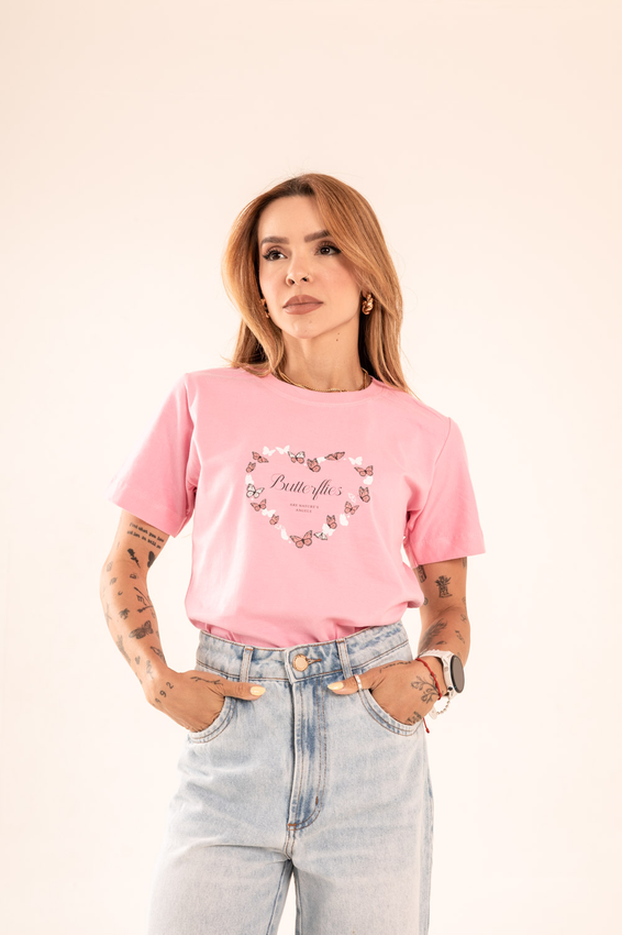 Tshirt com modelagem tradicional de camiseta gola''O'' com Gola em Ribana Canelada e costura ombro a ombro.