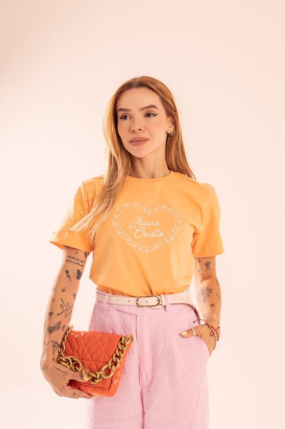 Tshirt com modelagem tradicional de camiseta gola''O'' com Gola em Ribana Canelada e costura ombro a ombro.