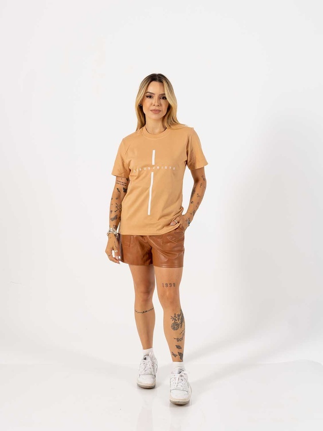 Tshirt com modelagem tradicional de camiseta gola''O'' com ribana e costura ombro a ombro.
