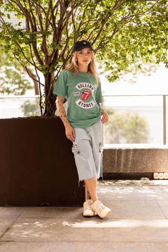 Tshirt Estonada com modelagem tradicional de camiseta gola''O'' com ribana e costura ombro a ombro.