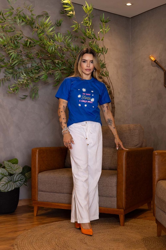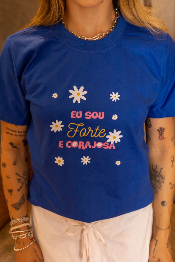 Tshirt com modelagem tradicional de camiseta gola''O'' com ribana e costura ombro a ombro.