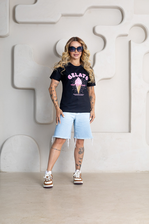 Tshirt com modelagem tradicional de camiseta gola''O'' com Gola em Ribana Canelada e costura ombro a ombro.