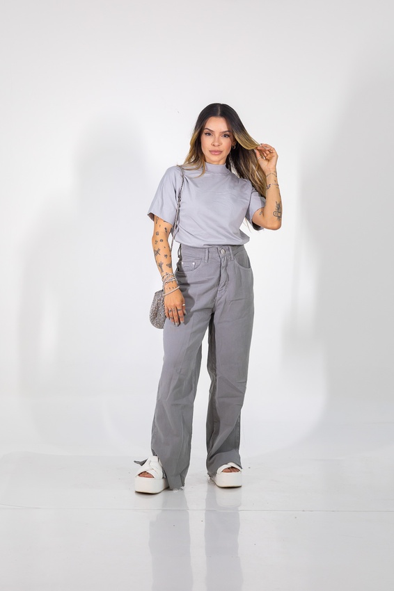 Tshirt com modelagem tradicional de camiseta gola''O'' com ribana e costura ombro a ombro.