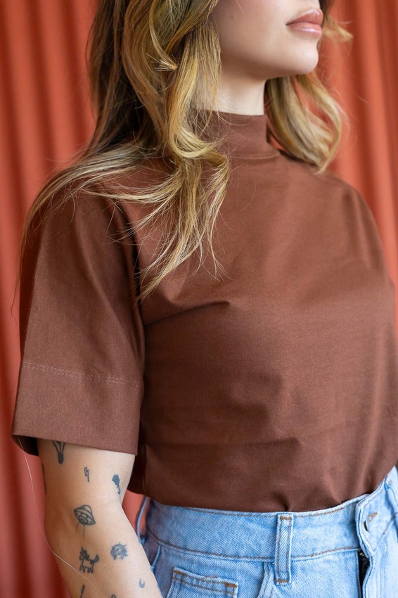 Tshirt com modelagem tradicional de camiseta gola''O'' com ribana e costura ombro a ombro.